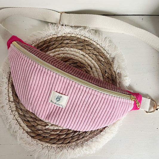 Sac banane ENFANT/ADO velours côtelé rose flashy