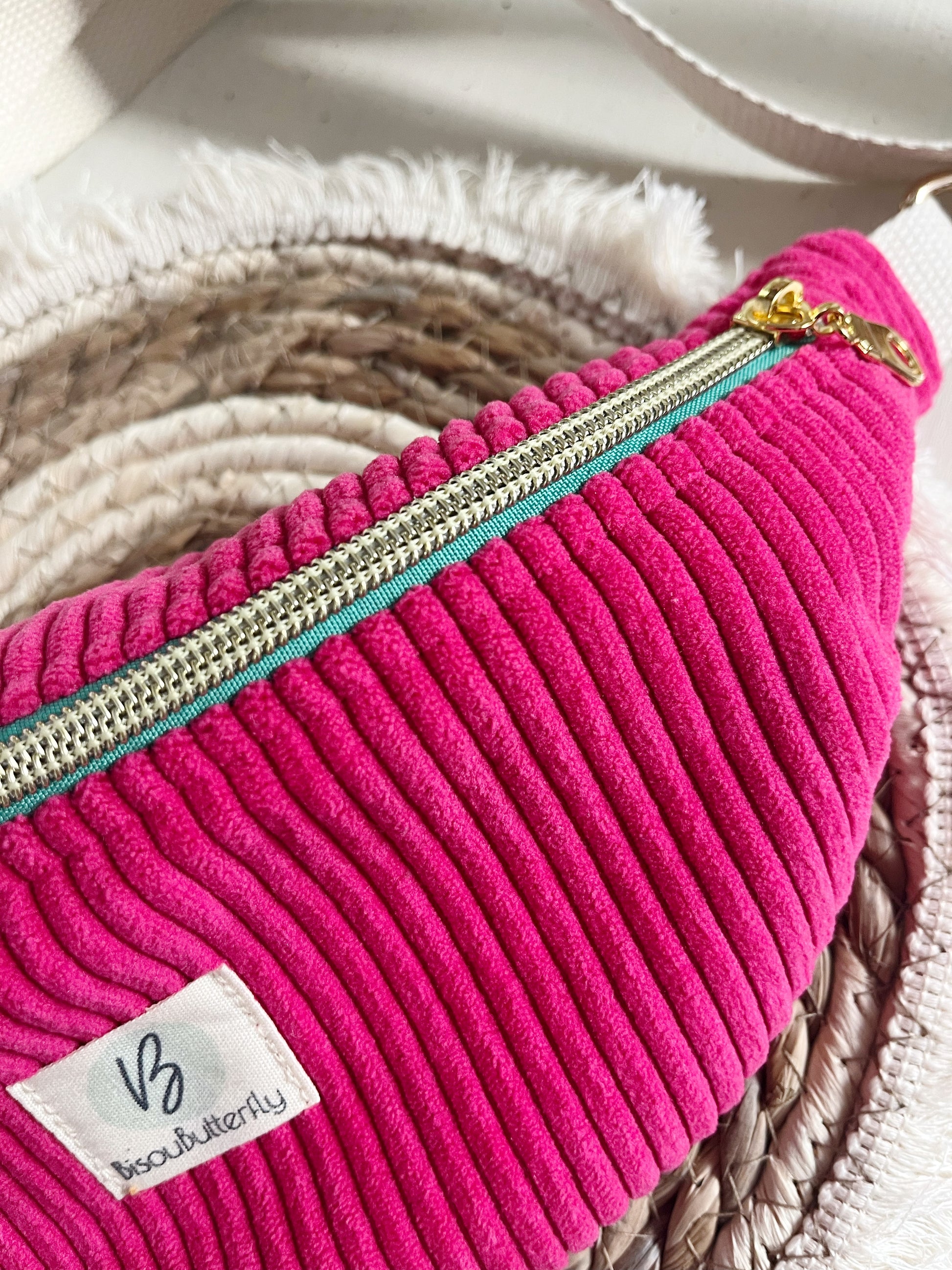Sac banane ENFANT/ADO velours côtelé rose flashy
